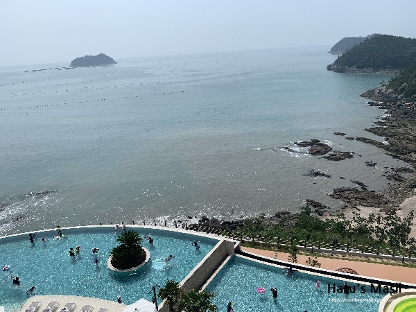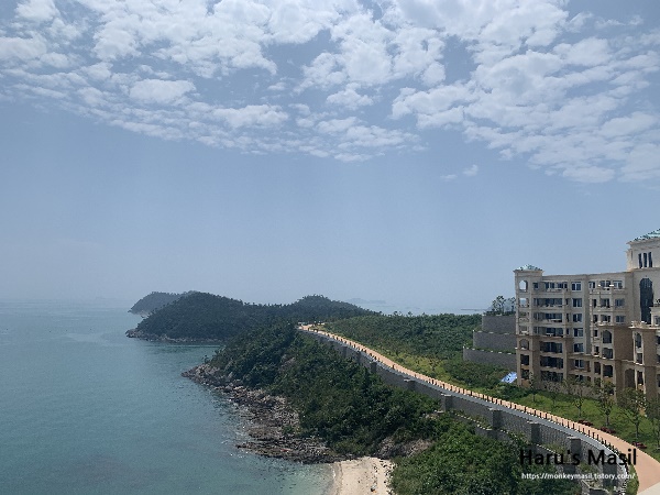 진도 쏠비치 리조트 스위트 객실 테라스에서 볼 수 있는 풍경입니다. 아마 호텔형 객실은 더 앞에 위치하기 때문에 바다가 더 잘 보이지 않을 까 싶어요. 패밀리 객실이 있는 동은 가장 뒤에 넓게 위치해 있기 때문에 바다가 약간 멀리 보이는 부분이 있습니다.