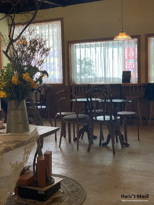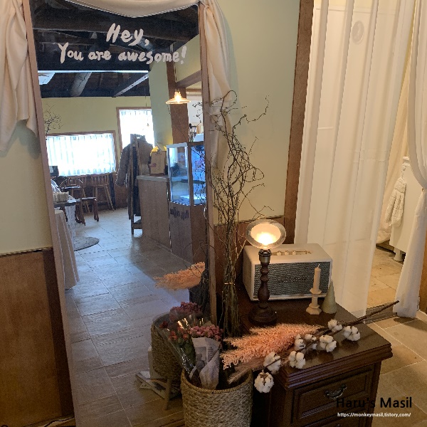안에 이렇게 곳곳에 포토존도 마련되어 있던 헤이커피. 겨울이라 그런지 목화 꽃도 보이고, 조용한 선율의 음악도 흘러나와 분위기 좋았던 헤이커피입니다.