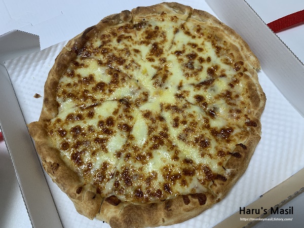 일단 식기 전에 맛 본 미스터 초이 마르게리따 피자 입니다. 사실 비쥬얼도 그렇지만 마르게리따 피자라기보다는 그냥 치즈피자에 가까운 맛이에요. 소스로 온전한 토마토 소스 맛은 아니여서 더 그런것 같긴합니다. 하지만 따뜻할 때 먹으니 괜찮았습니다.
