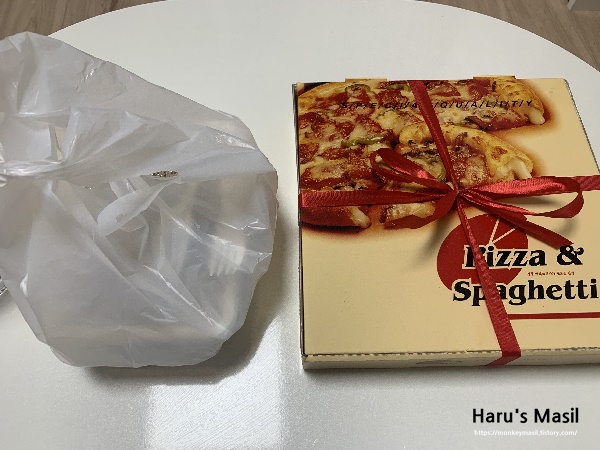 제가 주문한 메뉴는 마르게리따 피자 6,000원, 씨푸드 갈릭 올리브 오일 7,000원 입니다. 둘 다 이렇게 포장을 잘 되어 있었어요. 피자를 들고올 때 따뜻하고 냄새가 솔솔나서 기대감이 많이 올라갔습니다.