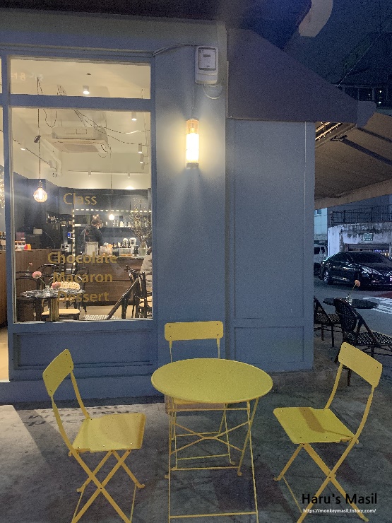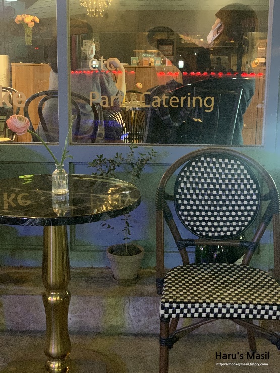 이런 의자들과 소품. 일렬로 되어있는 의자가 정말 파리 노천카페 같죠? 이쪽만 보면 파리인데 반대편을 보면 뷰가 매우매우 한국적 ㅋㅋㅋ
