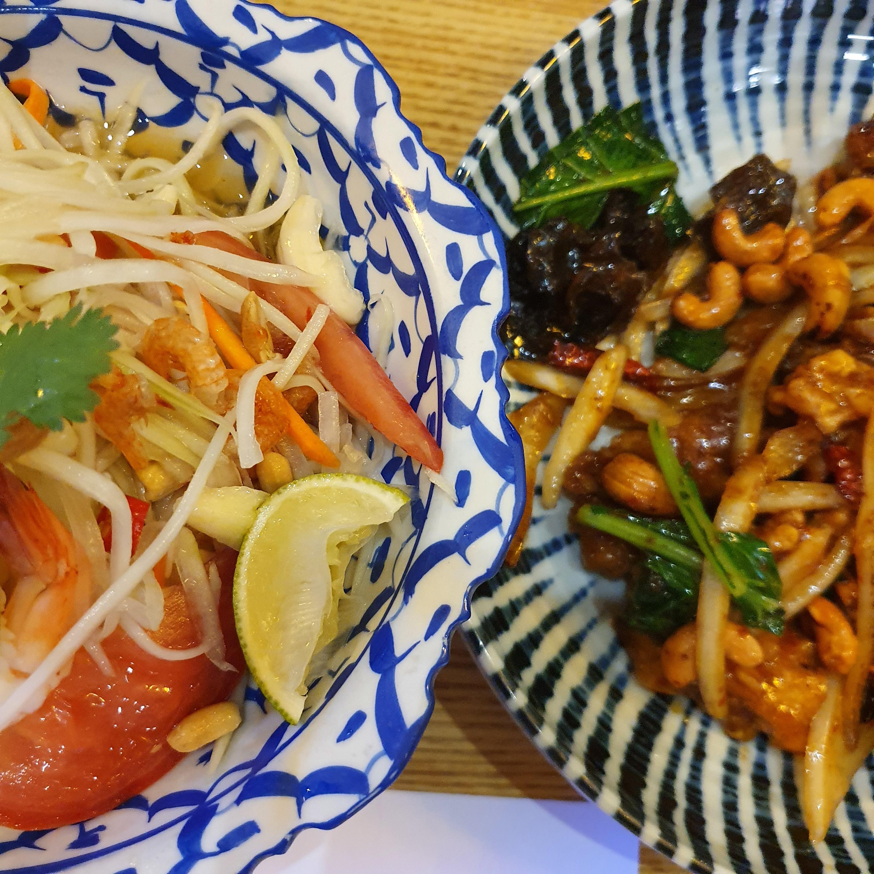제가 좋아하는 조합은 왕새우 팟타이 + 나시고랭 볶음밥입니다. 태국 하면 대표적으로 떠오르는 음식이기도 하고 한국인 입맛에 잘 맞는 메뉴 구성입니다. 저는 이 두 메뉴를 기본으로 그날 먹고 싶은 메뉴를 하나 추가해요. 태국 음식을 원래 좋아하고 팟타이랑 나시고랭은 꼭 먹어야 하니까요.