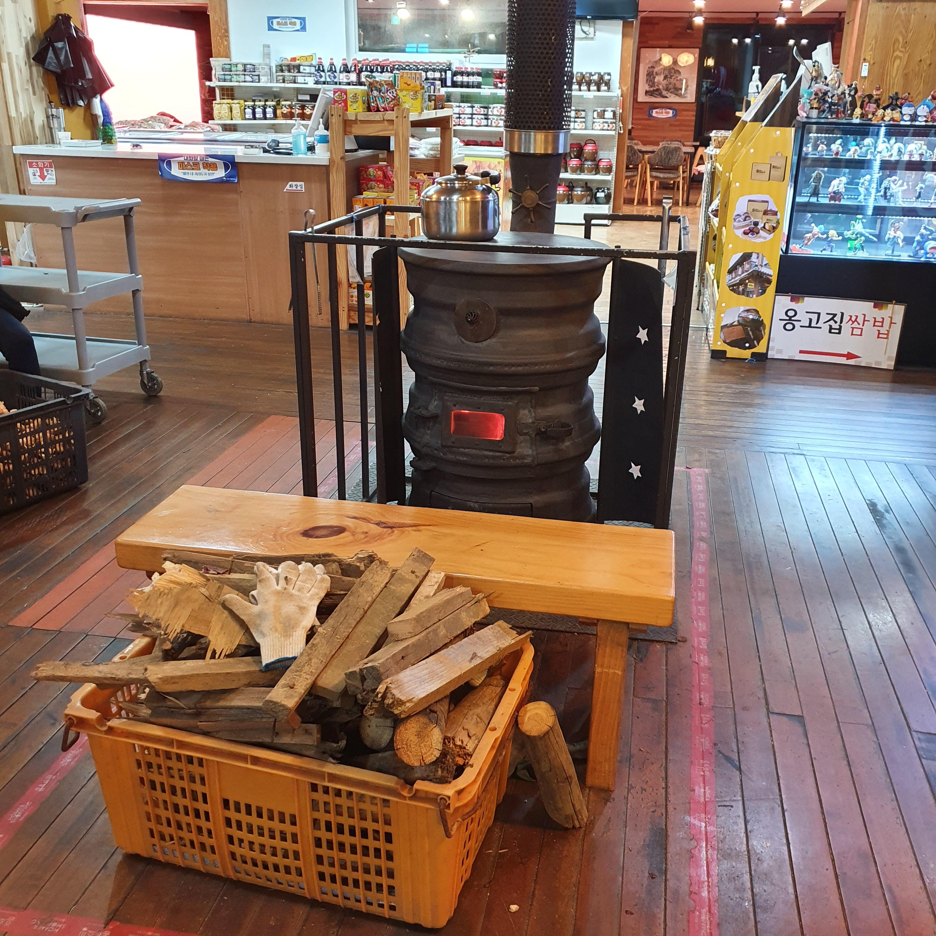 화로 뒤편에 보이는 장소가 각종 식자재와 특산물 그리고 카페가 위치하고 있는 곳이며 우측으로는 교실 4개 넓이의 공간에 빽빽한 테이블을 찾아볼 수 있습니다. 단체로 와서 식사하기에 좋은 곳이네요.