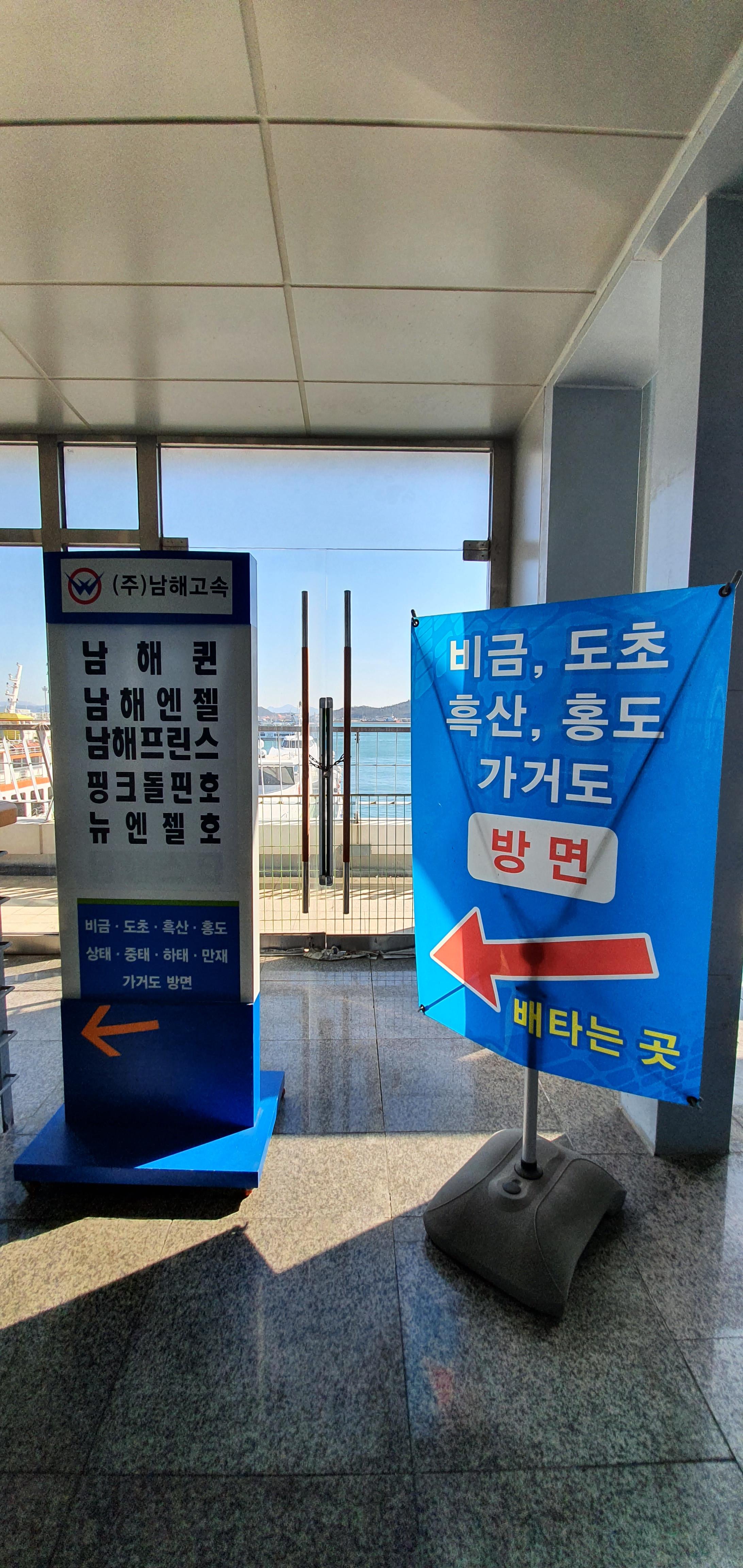 마지막으로 화장실에 들렀다가 급하게 12시 20분에 대합실로 가서 제가 예약한 무지개 여행사 가이드와 만나서 표를 받으며 자세한 홍도/흑산도 일정에 대한 설명을 들었습니다.