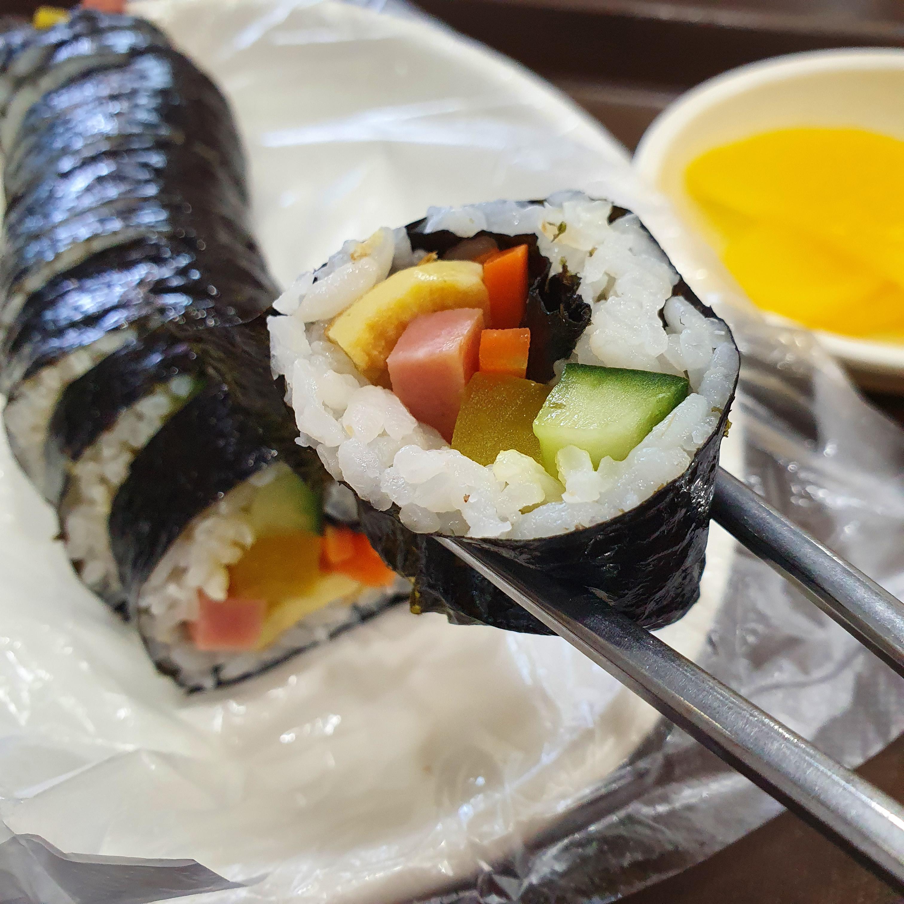수제 샌드위치도 먹고 싶고 라면도 먹고 싶었지만 현재 시각이 11시 50분이라 먹기 굉장히 위험한 상황임을 고려해서 간단히 김밥을 먹은 것은 꽤 현명한 선택이었습니다.