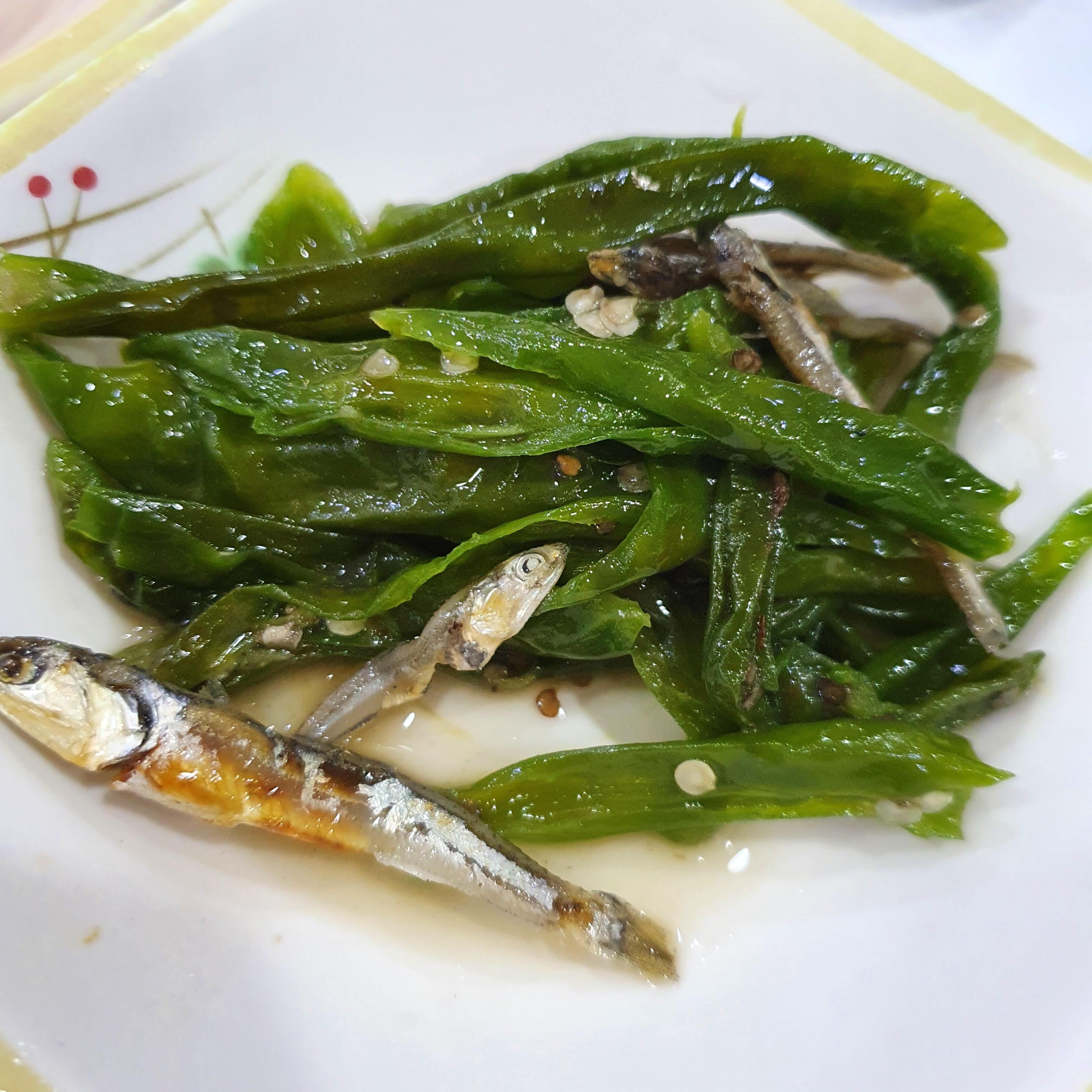 꽈리고추랑 감자, 된장국, 생선으로 겨우겨우 한 공기를 다 먹었어요. 반찬을 많이 주시는 건 좋은데 아직 제가 배가 불러요......