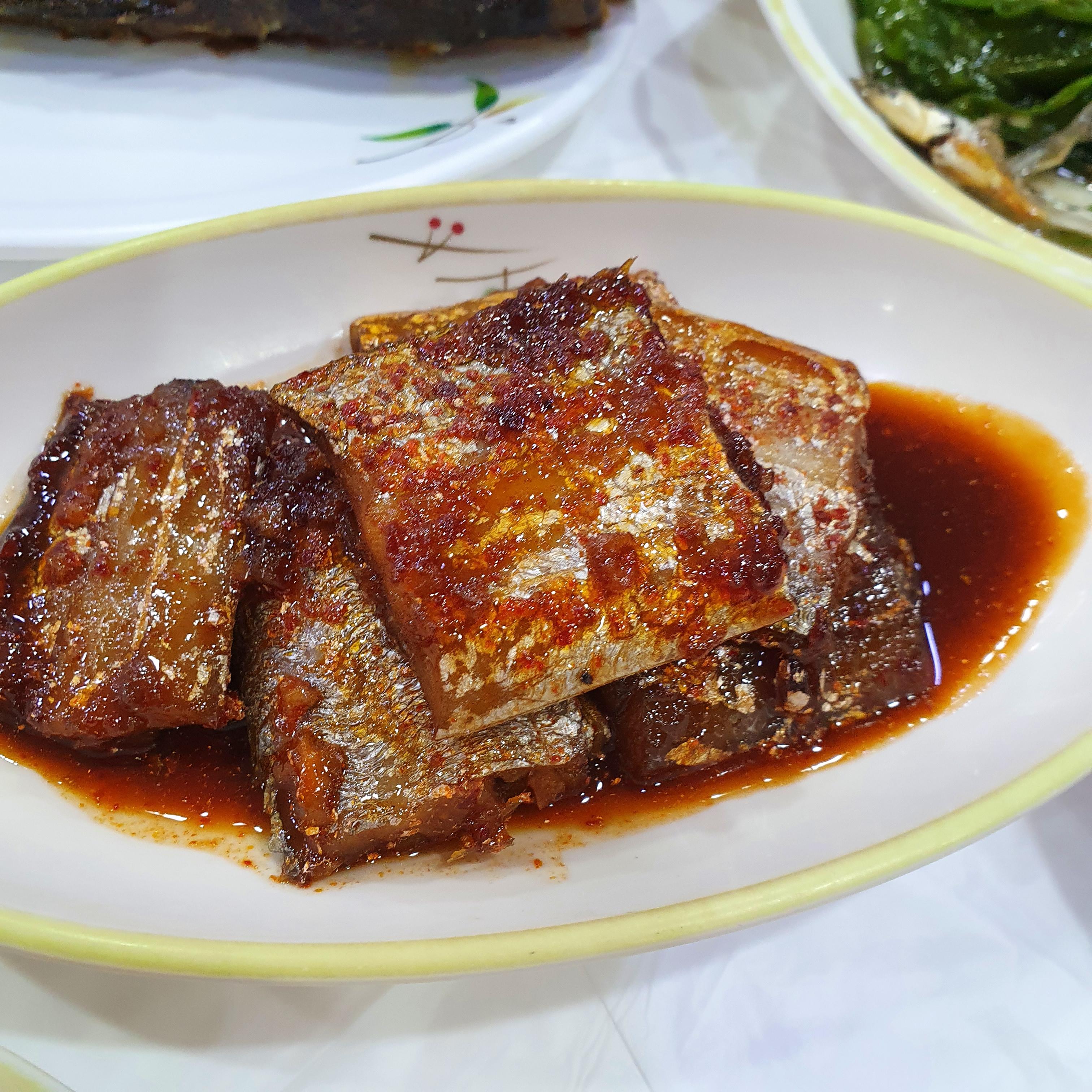 메인 요리는 갈치조림과 못생긴 생선인데 우럭인 것 같아요. 갈치조림은 칼칼하다기보다는 달달한 편이고 개인적으로 우럭이 더 맛있었어요. 은근히 먹을 것도 많고 삼삼한 게 자극적이지 않아 좋았습니다.