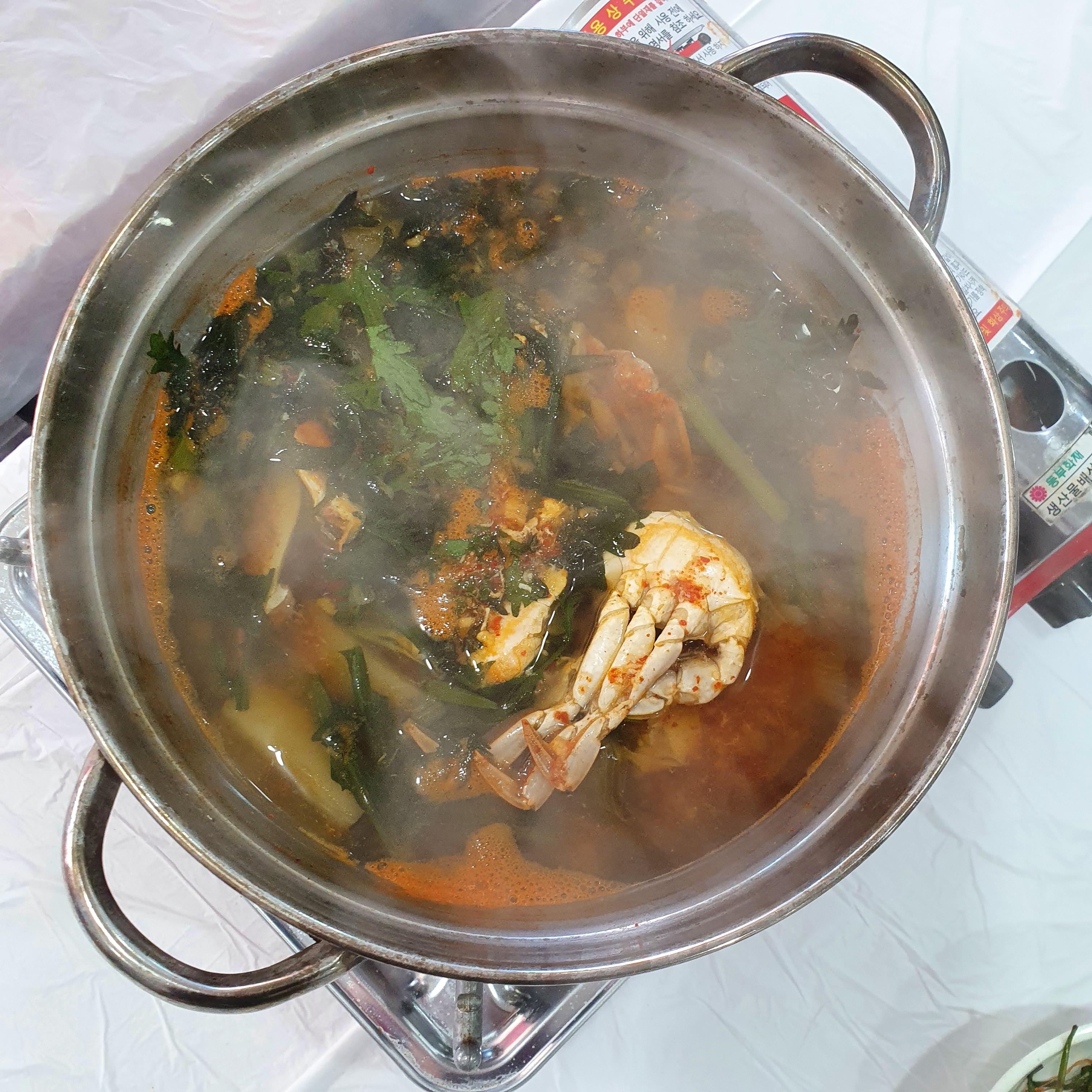 식사가 다 차려져 있었는데 꽃게탕과 마른 김, 생선, 갈치속젓, 기타 반찬으로 가벼운 점심 식사였습니다.